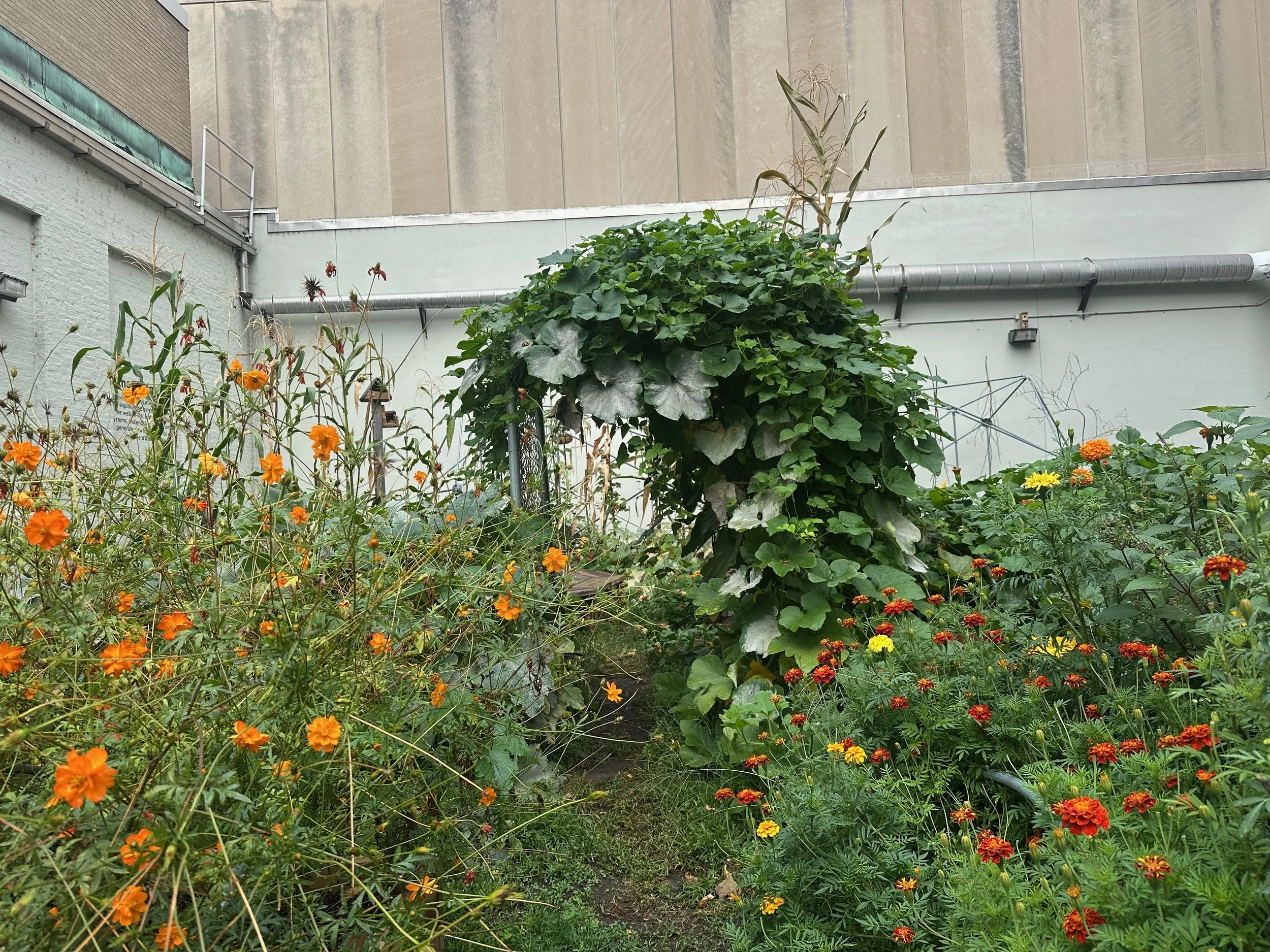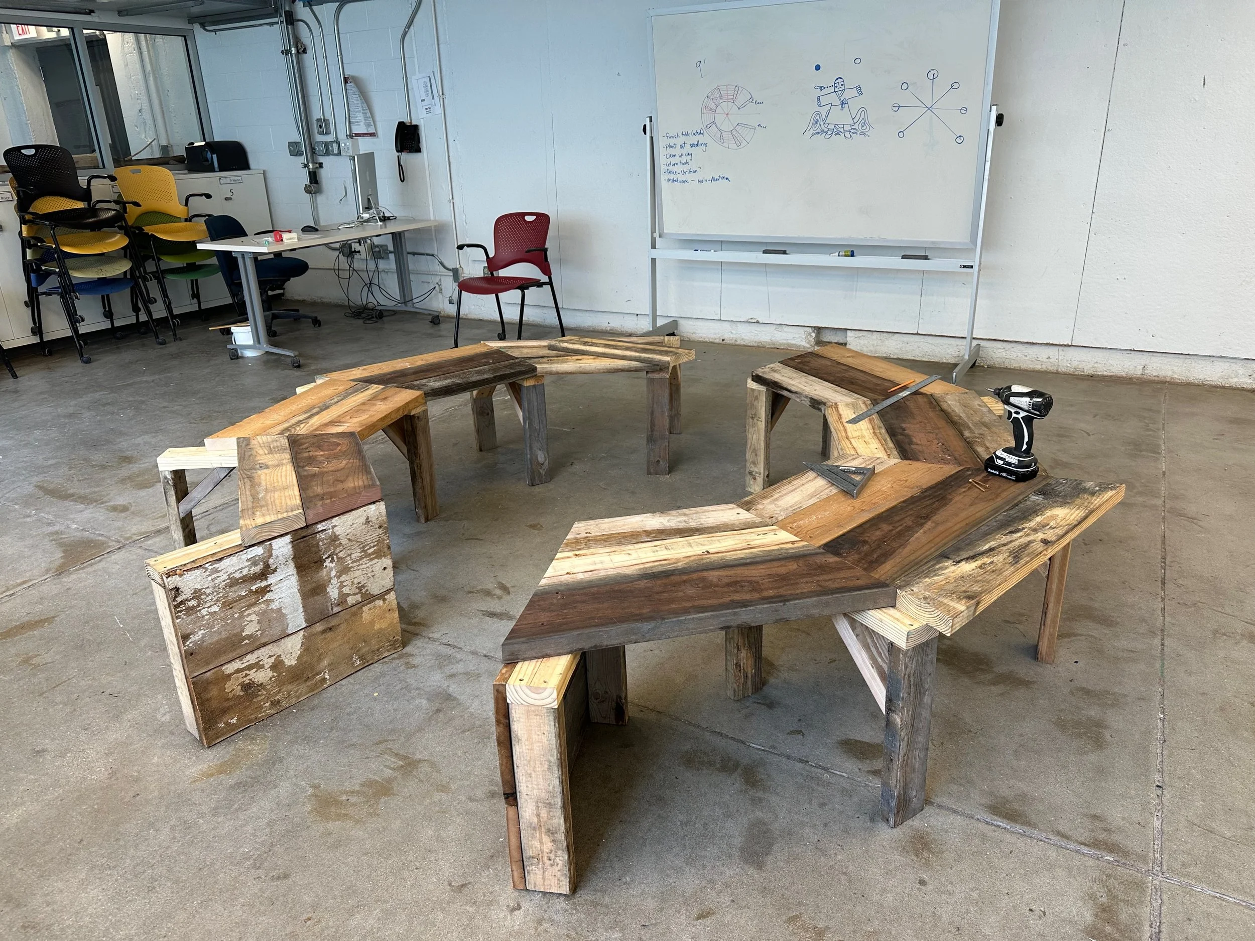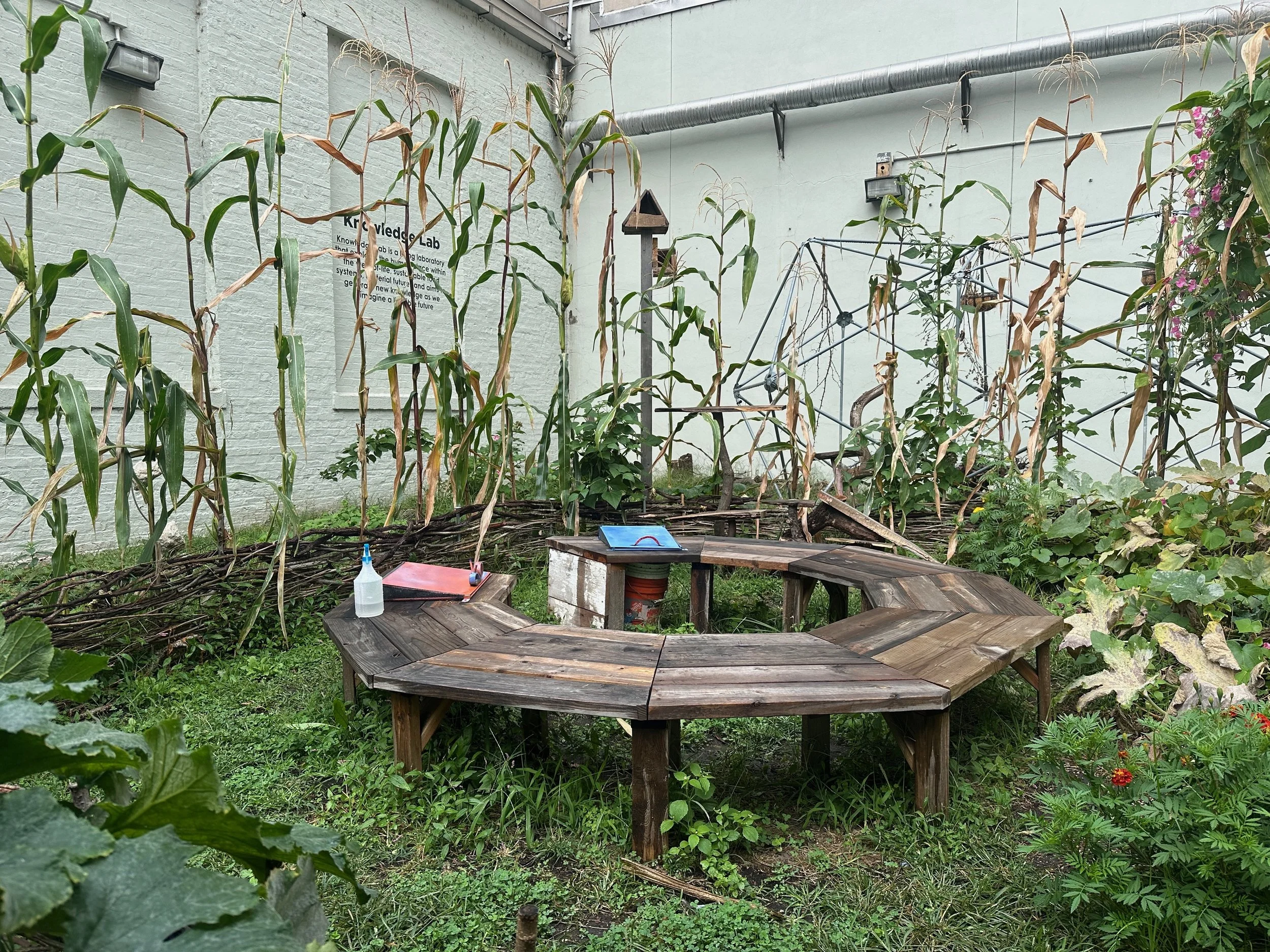Clay harvesting and processing, woodworking, vermicompost, growing from seed, soil, worms, seeds, water, sunlight, love. Garden maintained by other students in the class. Truly a collaborative project.