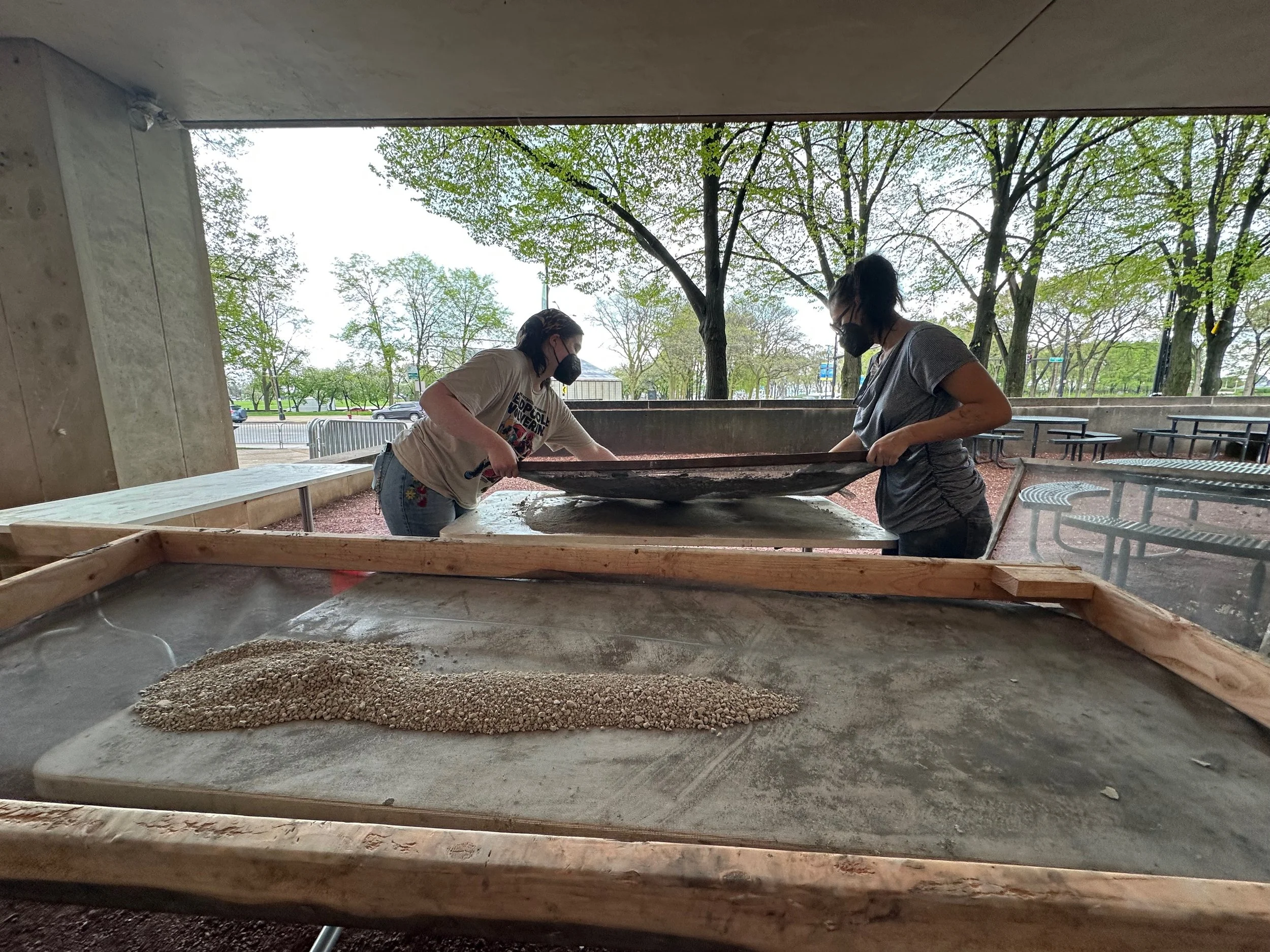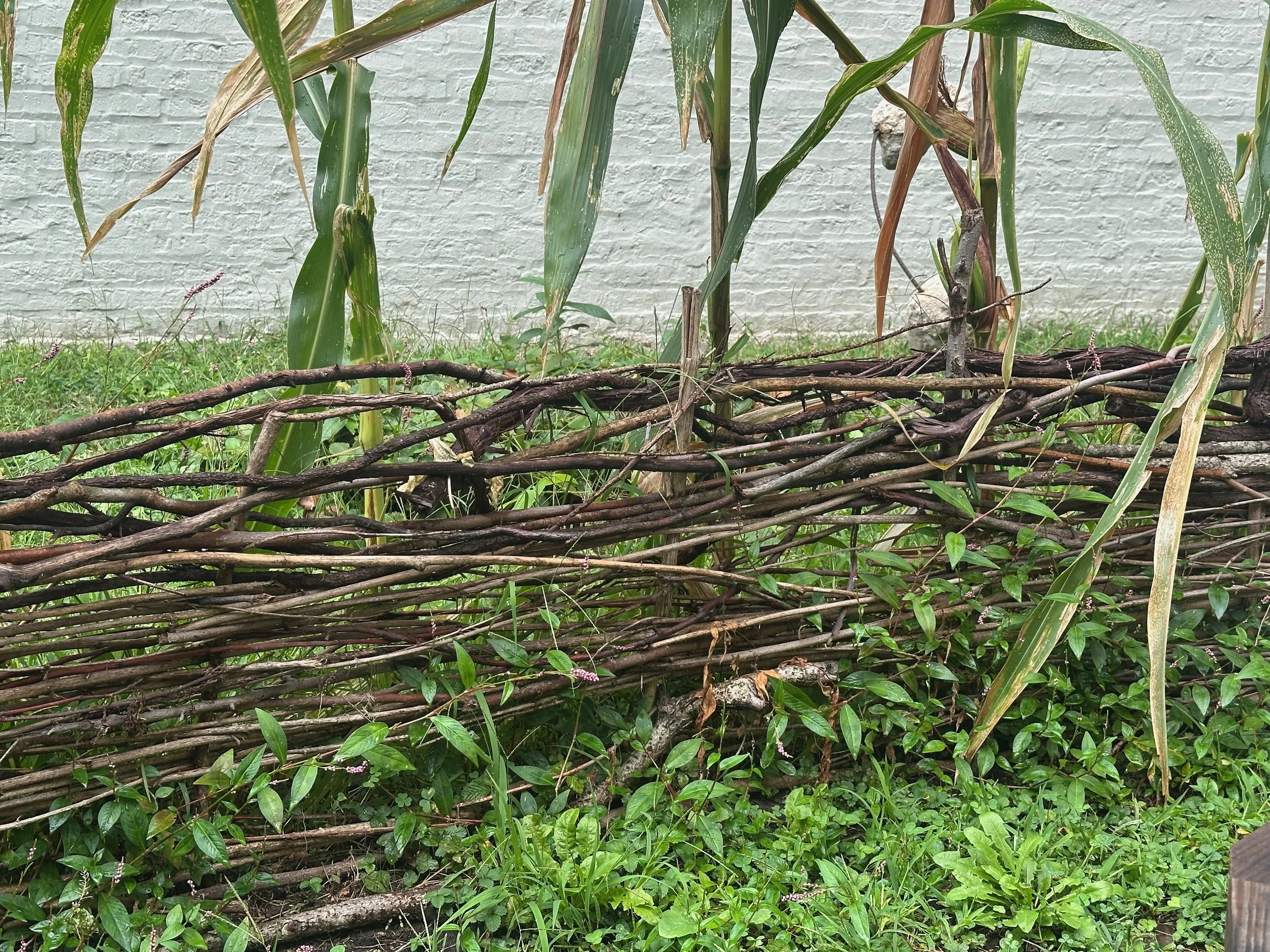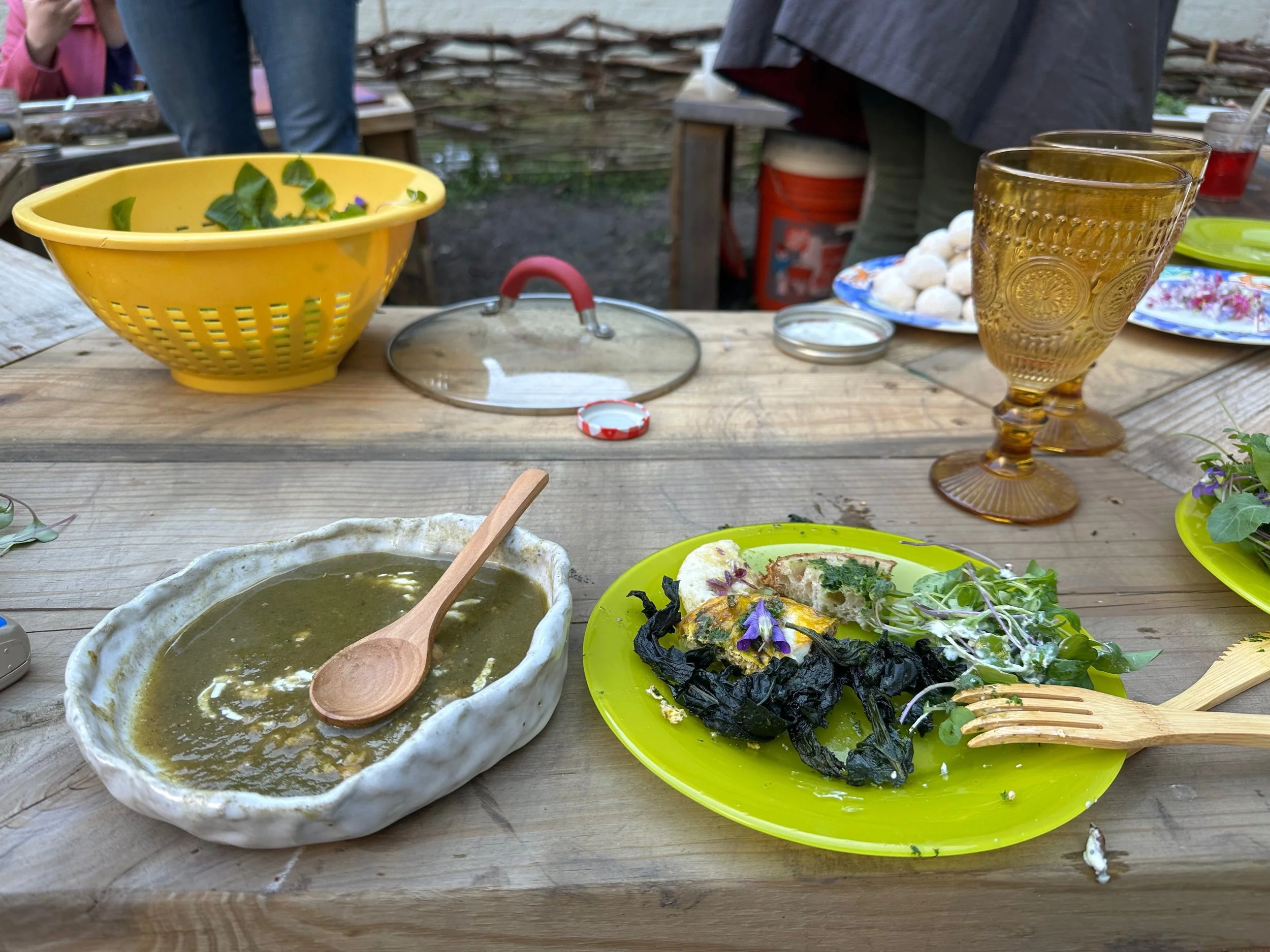 In Sara Black’s Knowledge Lab: Entanglements course, we investigated the entanglements between humans and the natural world, working collaboratively to design and fabricate furniture, tableware, and a site for a meal to take place. Every aspect of the design considers the non-human organisms that also inhabit the space. We built a table from reclaimed wood, a wattle fence with willow branches, and we planted a garden that would continue to flourish and feed the community through the growing season. We harvested and processed clay at Oxbow, which we used to make the vessels we ate from. We foraged for food in Forest Park, grew mushrooms, and prepared our meal together. Built into the structure of the table are two bins for vermicompost.